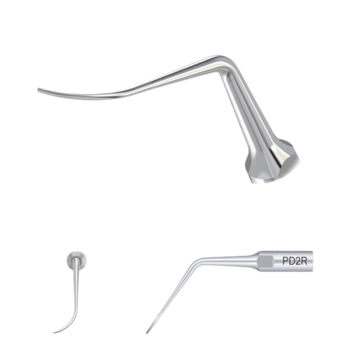 Периодонтическая насадка для скалера PD2R правоугловой формы предназначена для обработки труднодоступных межзубных промежутков. С ее помощью легко снимается зубной налет, при этом нет никакой угрозы повреждения обрабатываемого зуба.